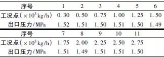 在某專用減溫減壓裝置裝備配套中,采用高壓差給水調節閥,進口壓力P1=8.6MPa,出口壓力P2=1.5MPa,減溫水溫度tb=104℃,減溫水流量Q=2.5t/h,選用高壓差調節閥的規格為DN20、PN100。樣機試驗時,取工況點共11個,對各個工況點進行性能試驗及整體破壞性試驗(表3),均達到技術要求。