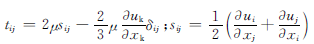 式中,tij、sij分別為牛頓流體中的應力應變關系和應變率張量;p為介質壓力;μ為介質的動力粘度;δij為克羅內克符號。