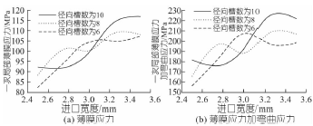 圖7 徑向槽數不同時進口寬度對應力的影響