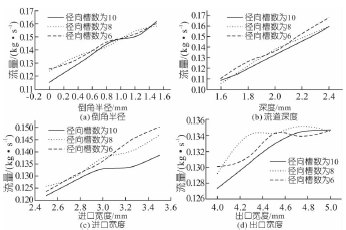 圖3 徑向槽數不同時各參數對流量的影響