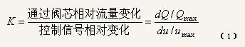 K1表示閥行程與到閥控制信號(hào)之間的關(guān)系,K2表示通過(guò)調(diào)節(jié)閥的物料流量與閥行程之間的關(guān)系,即調(diào)節(jié)閥的結(jié)構(gòu)特性(又稱(chēng)固有流量特性),一旦閥已選定它就不能再改變了。調(diào)節(jié)閥的結(jié)構(gòu)特性,即