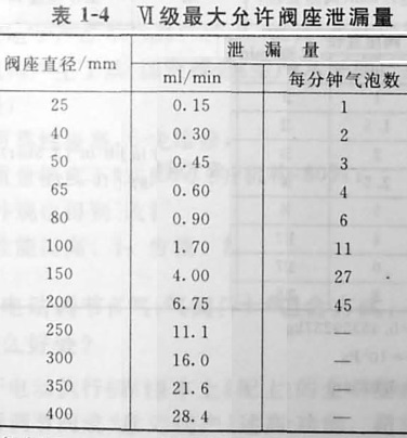 隨閥座直徑變化,最大允許泄漏量(ml/min或每分種氣泡數)列于表1-4.