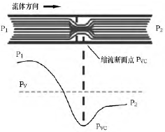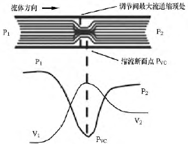 圖1 液體流經(jīng)調(diào)節(jié)閥時壓力和流速間的關(guān)系
